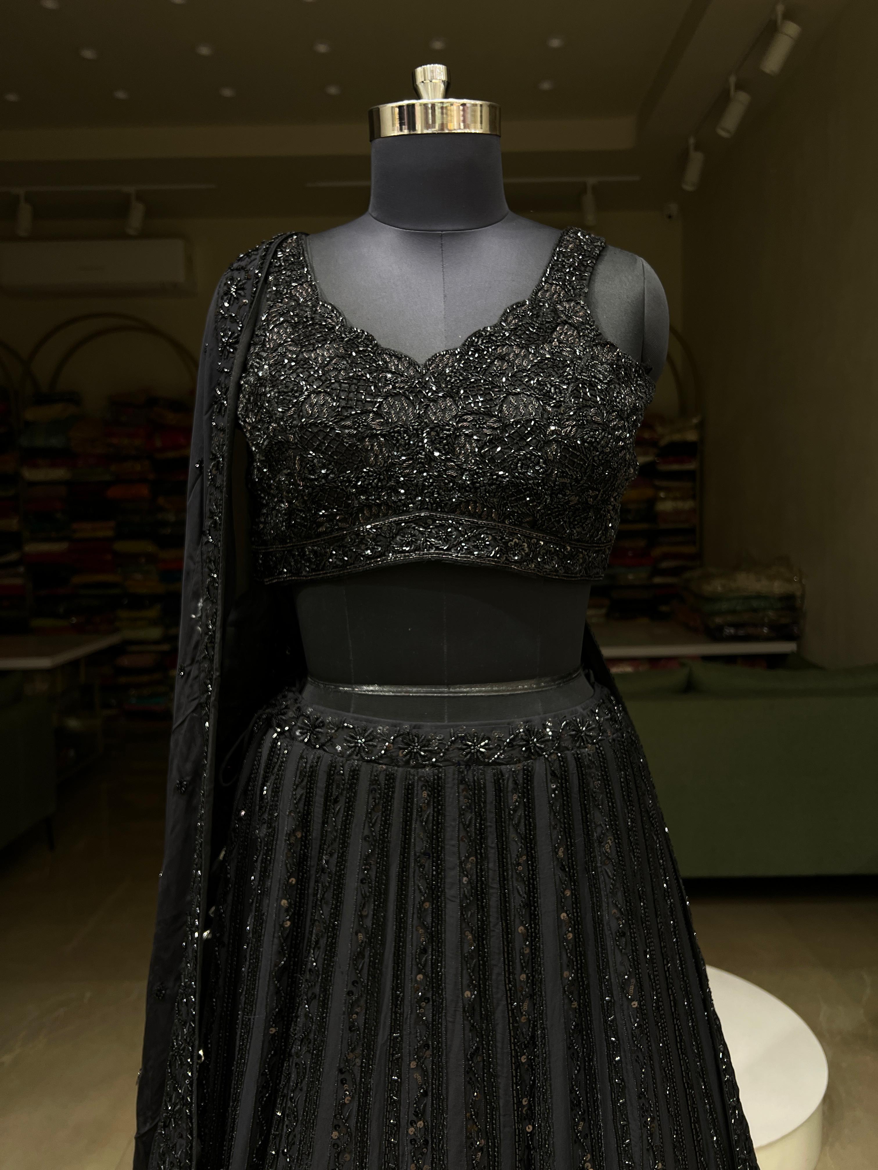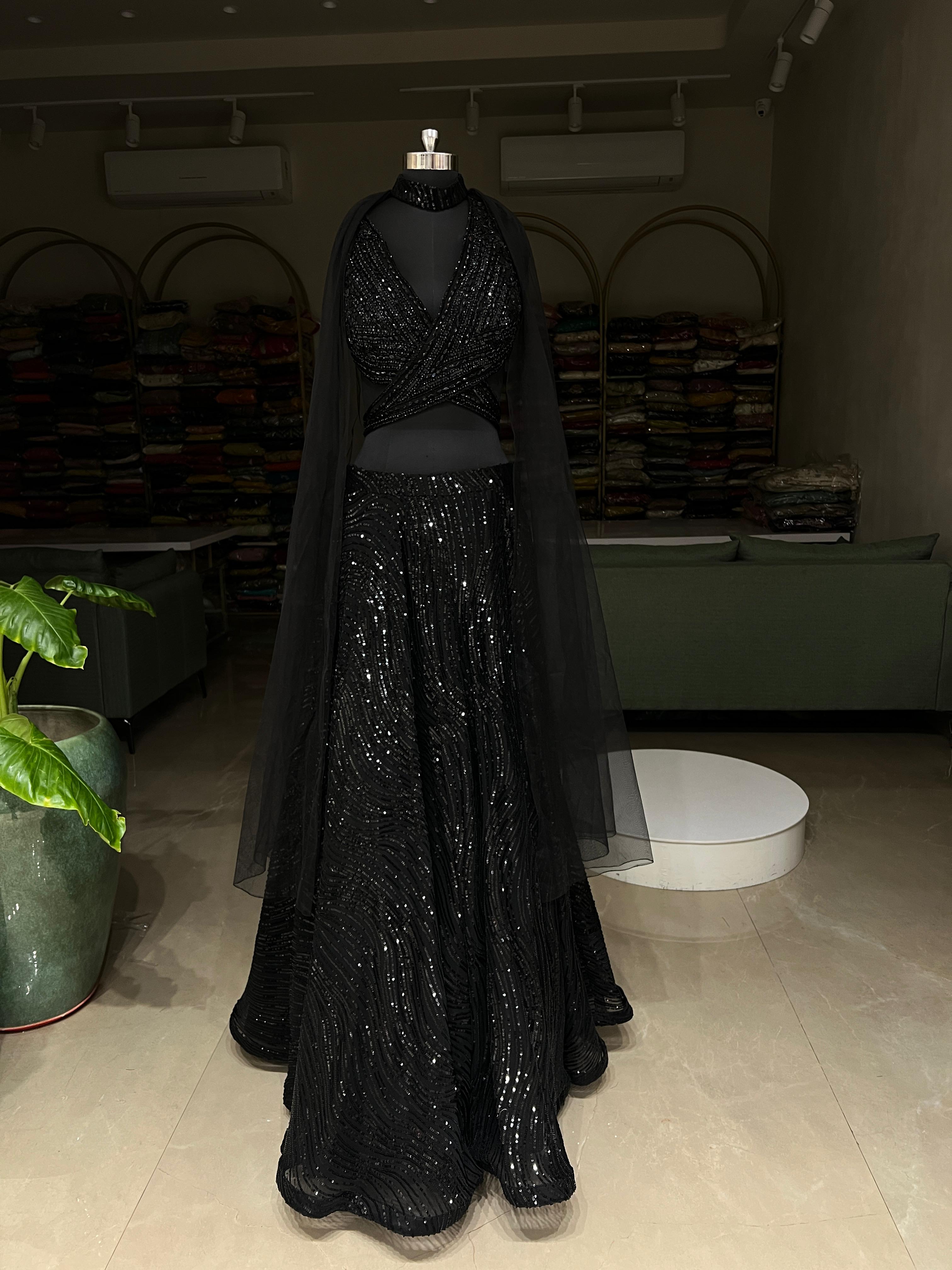 Black Sequins & Beadwork Embroidered Partywear Lehenga Set