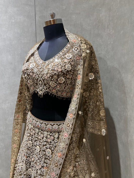 Olive Brown Heavy Embroidered Bridal Lehenga Set