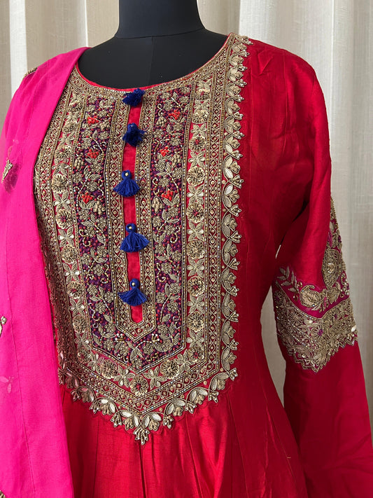 Rani Pink and Royal Blue Anarkali Suit with Zari and Mirror Embroidery
