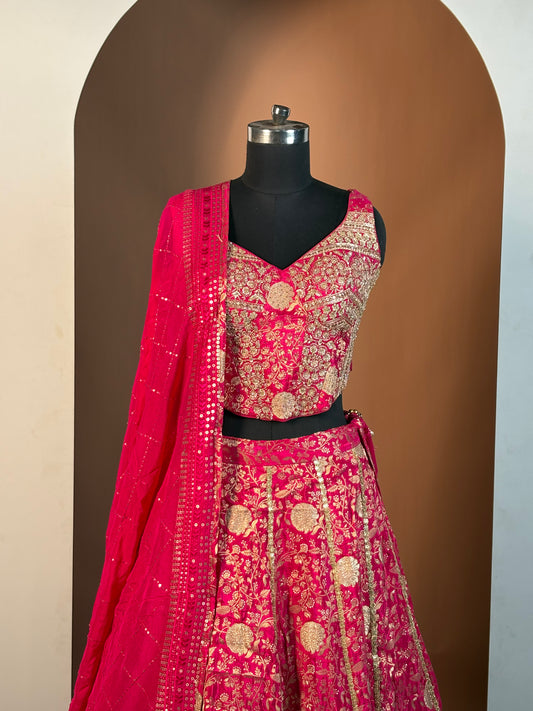 Rani Pink and Gold Zardozi Embroidered Bridal Lehenga Set