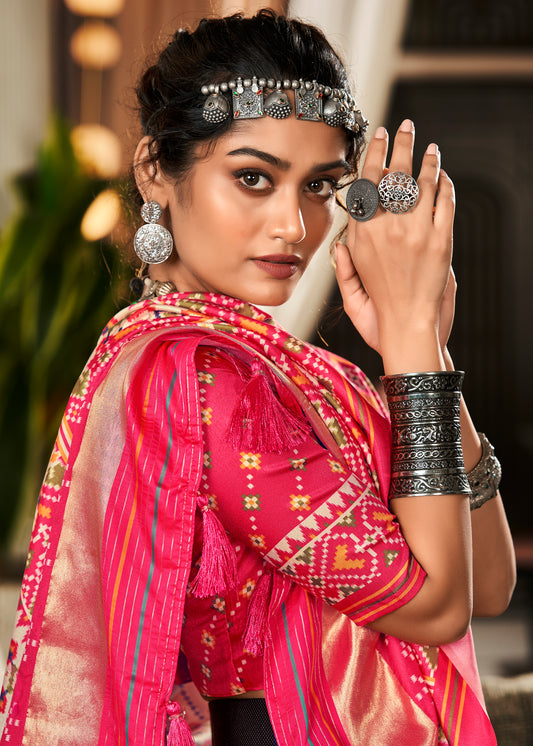 Creme Pink Patola Silk Saree