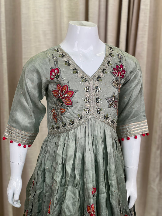 Embroidered Olive Green Anarkali Gown for Girls
