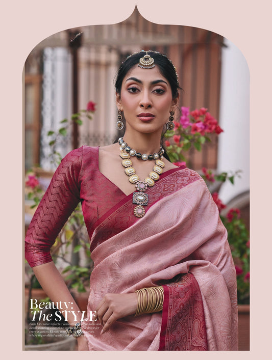 Blush Pink Mushroom Satin Saree with Zari Weaving