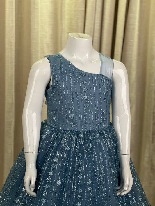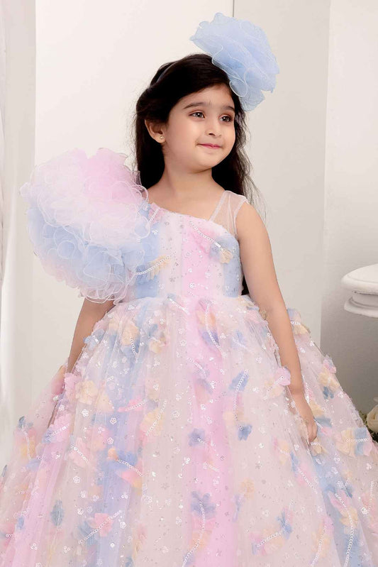 Multicolor Sequin Gown With Ruffled Asymmetric Sleeves