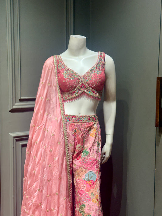 Dusty Mauve Embroidered Designer Lehenga Choli Set with Soft Net Dupatta