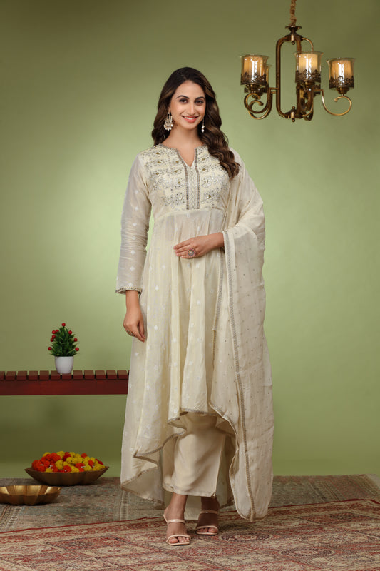 Cream Flora Sequence Work Anarkali Kurta set