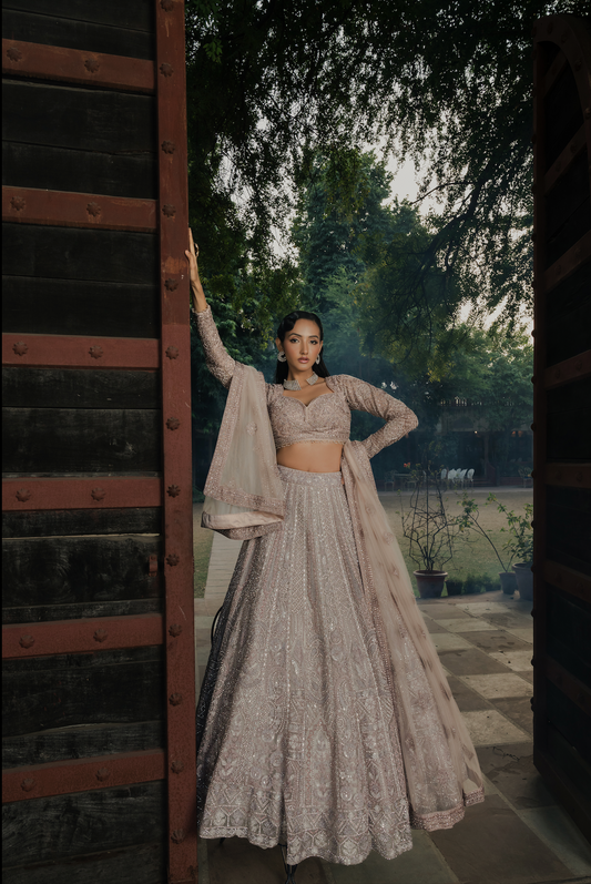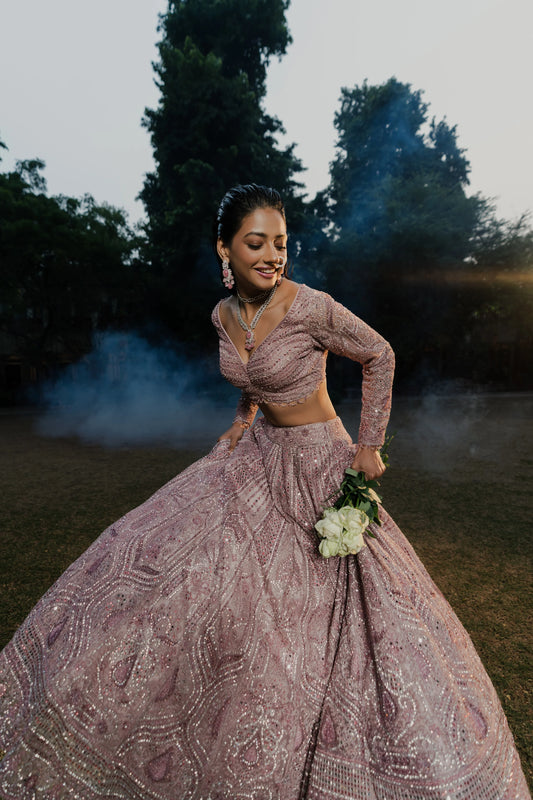 Dusty Rose Net Lehenga with Sequin Embroidery