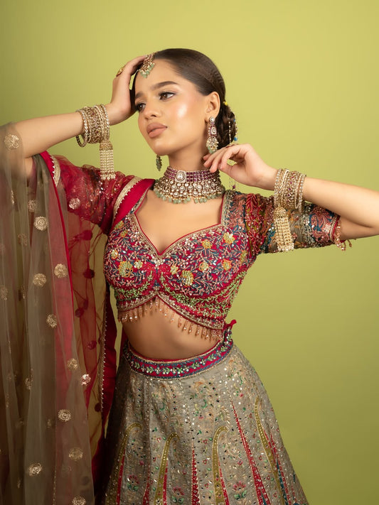 Heritage Multicolor Bridal Lehenga with Intricate Mirror & Threadwork