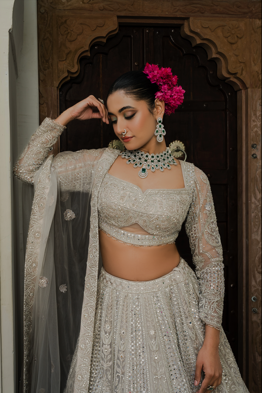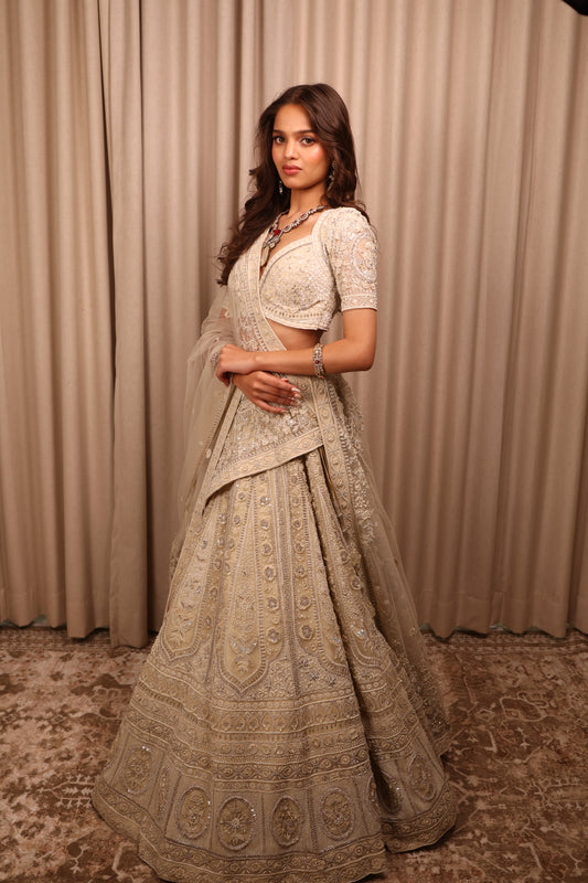 Ivory Silk Lehenga with Zardosi & Sequin Embroidery