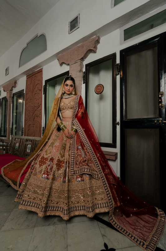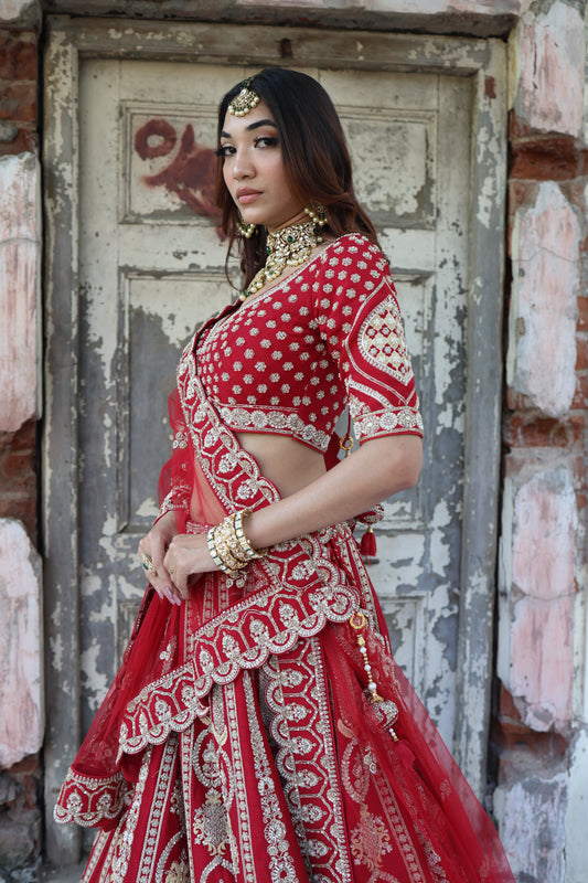 Regal Red Zari Embroidered Bridal Lehenga Set