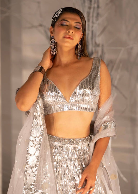 Shimmering Silver: Elegant Lehenga Choli Collection