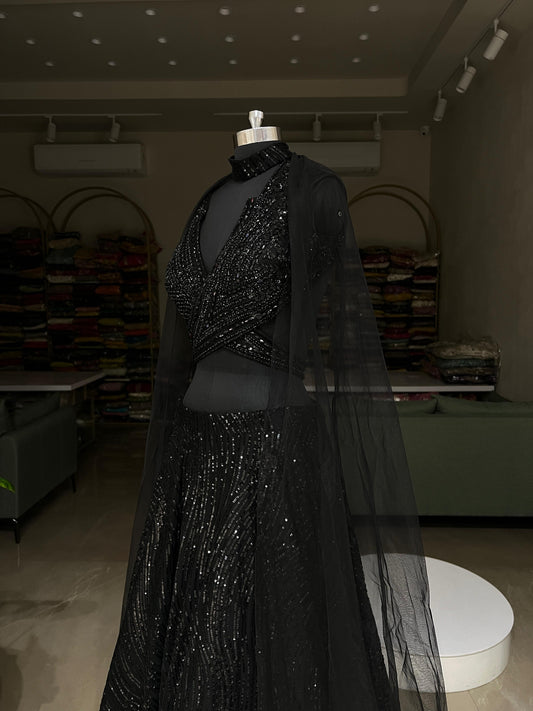 Black Sequins & Beadwork Embroidered Partywear Lehenga Set