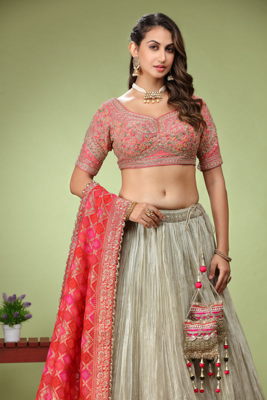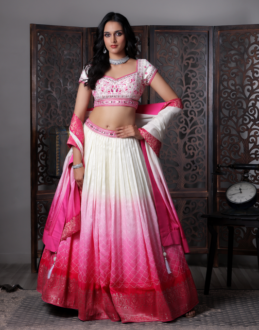 Pink & White Banarasi touch Lehnga Choli