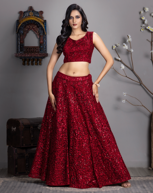 Dark Red embroider Lehnga Choli