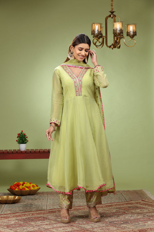 Mehndi Green Zariwork Art Silk Anarkali Suit