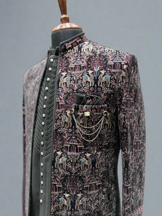 Blush Pink Embroidered Indo-Western Jodhpuri Suit