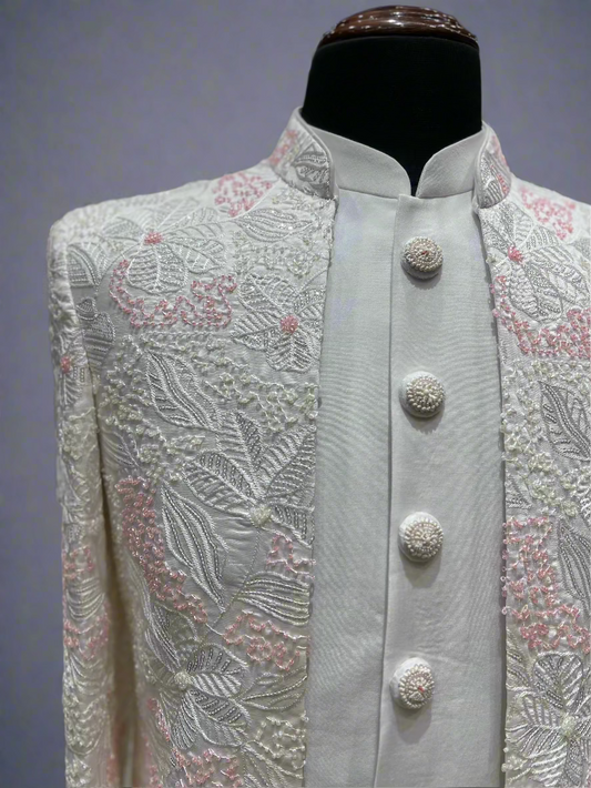 Ivory Embroidered Indo-Western Jacket with Subtle Pink Detailing