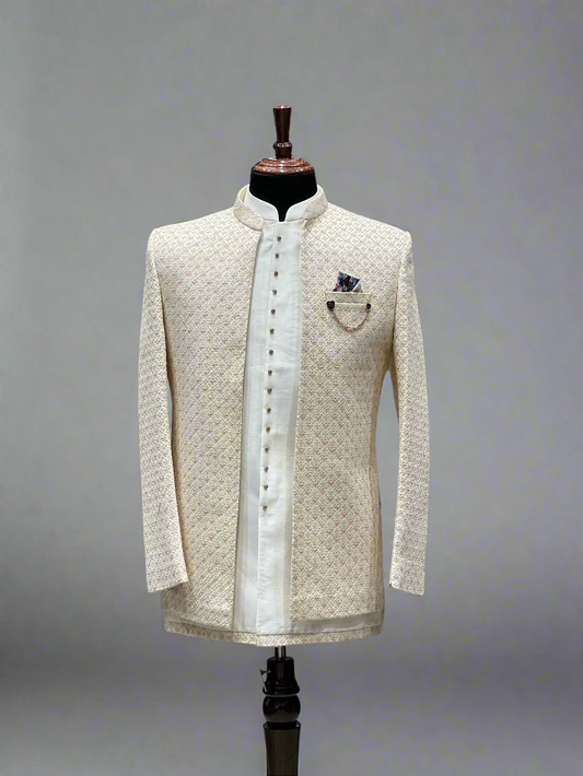 Ivory Textured Indo-Western with Subtle Geometric Embroidery