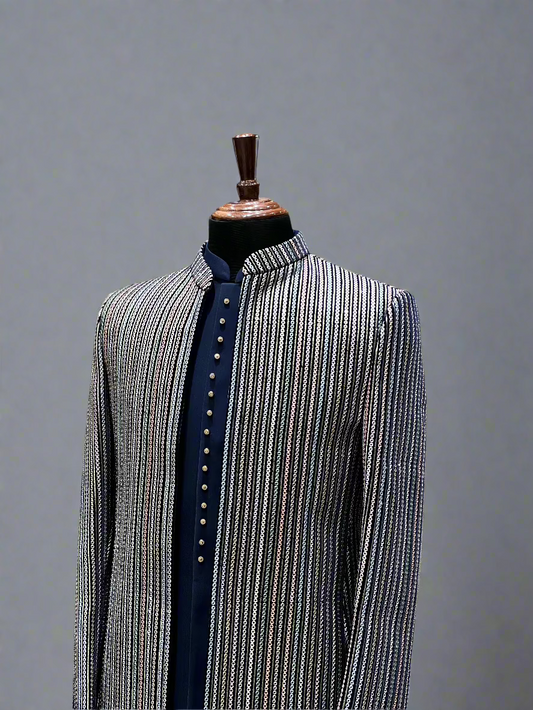 Navy Blue Textured Indo-Western with Zig-Zag Weave