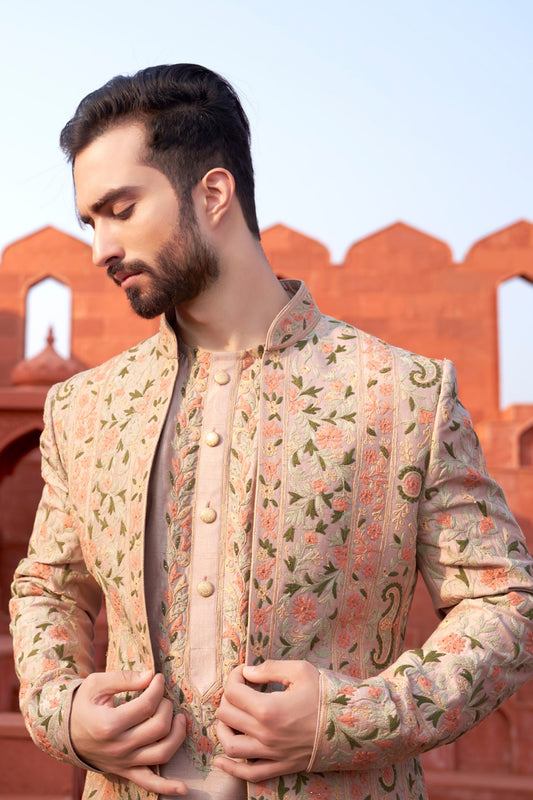Dusty Pink Indo-Western with Thread Work Jacket