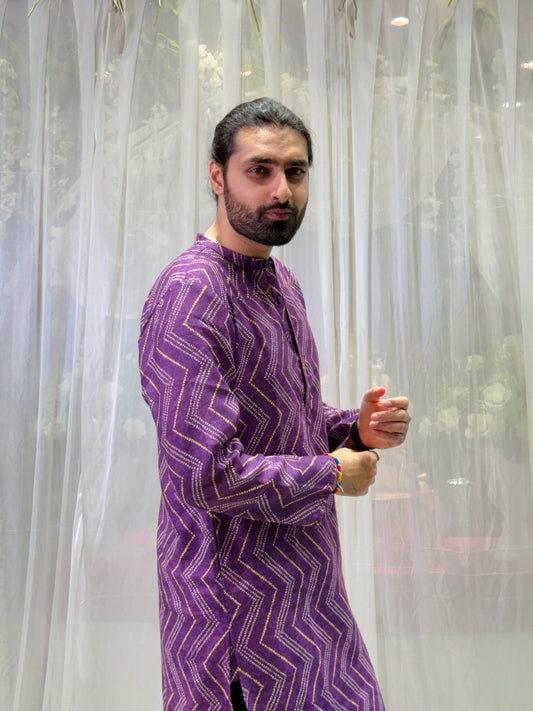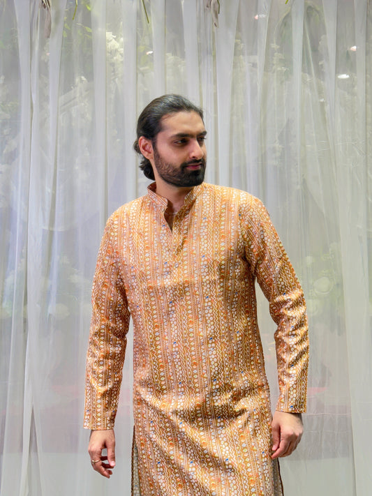 Maroon Silk Kurta with Golden Palm Embroidery and Sequin Detailing