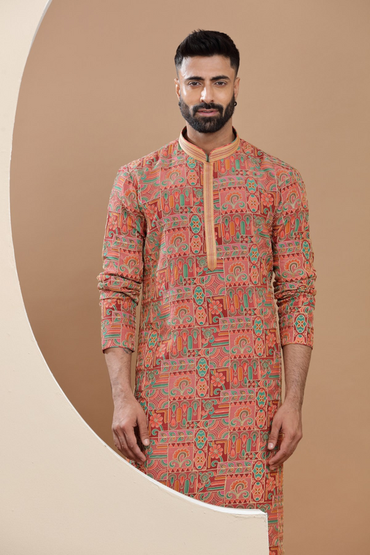 Orange Handcrafted Kurta Set