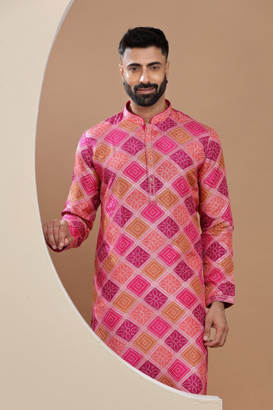 Pink Bandhani Kurta Set