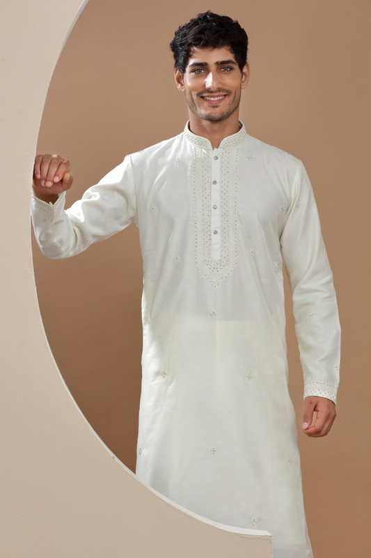 White Handcrafted Kurta Set