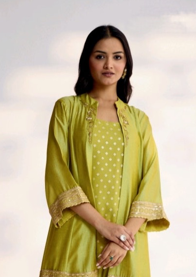 Lemon Yellow Silk Printed Kurti Pant Set with Dupatta