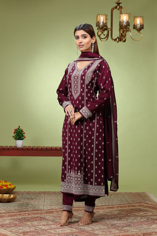 Lavender Purple Art Silk Dori Embroidered Anarkali Suit
