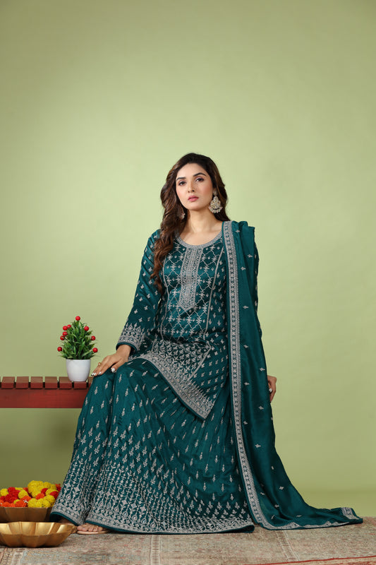 Peacock Blue Zariwork Art Silk Anarkali Suit