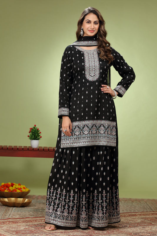 Mehndi Green Embroidered Patiala Kurti and Sharara set