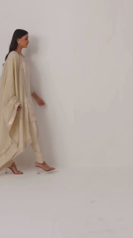 Off-White Designer Kurti Pant Set with Dupatta