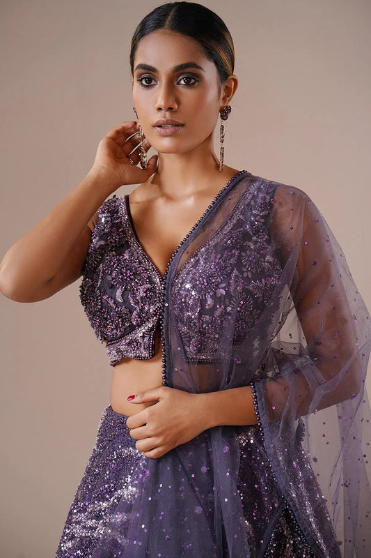 Purple Silk Lehenga Set with Silver Zari Embroidery