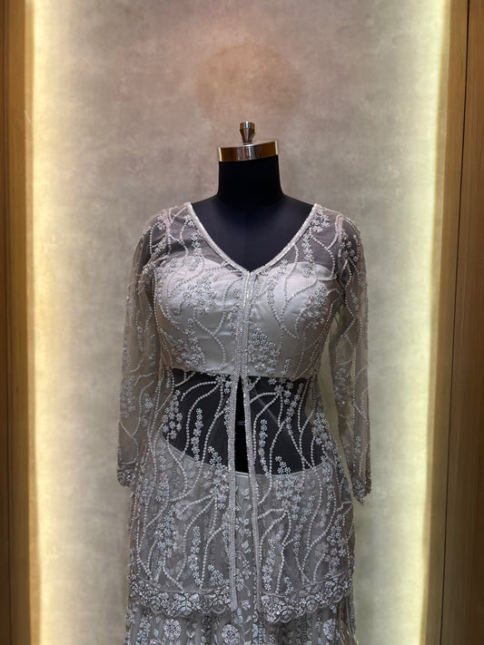 Grey Fowler Printed With Embroidered top Lehnga Choli