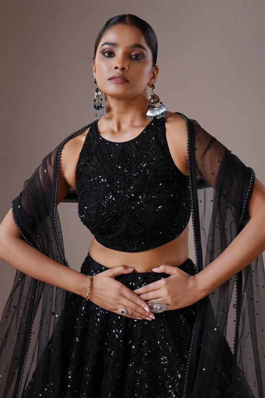 Midnight Black Sequin Embroidered Lehenga Set