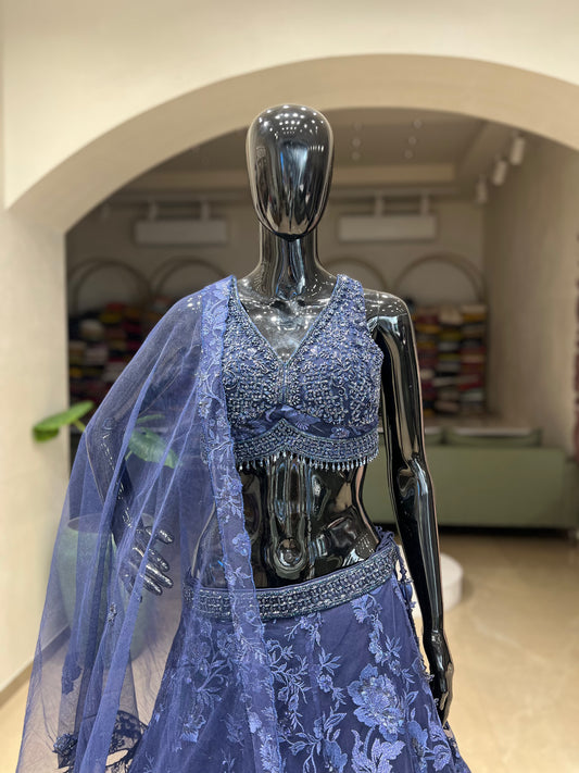 Navy Blue Flora Handcarfted with sequence work Lehnga Choli