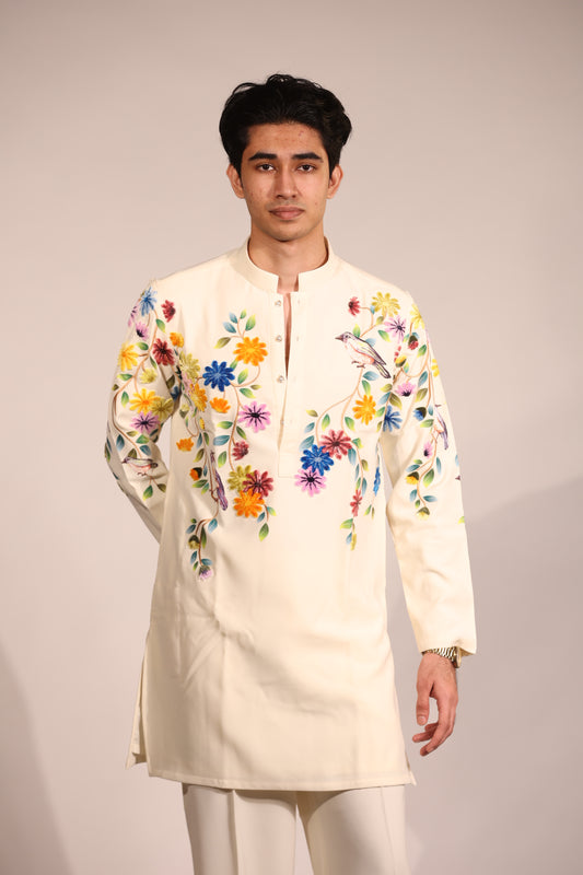 Ivory Floral Embroidered Contemporary Kurta Set