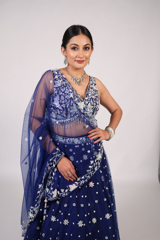 Midnight Blue Hand-Embroidered Festive Lehenga Choli
