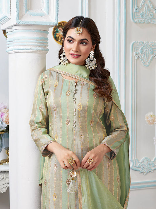 Green Jacquard Palazzo Set