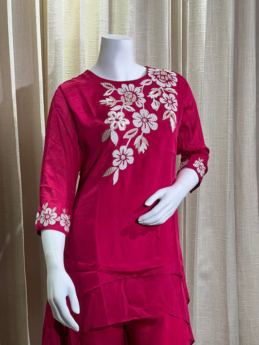 Pink Jacquard Palazzo Set