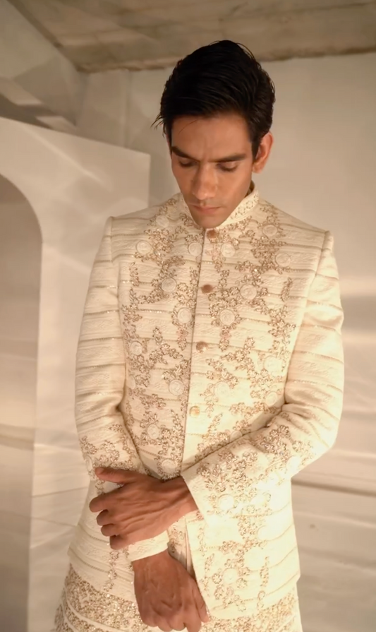 Classic Ivory Thread & Sequin Embroidered Sherwani Set
