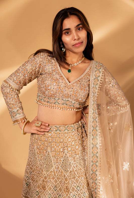 Champagne Blush Heavy Embroidered Bridal Lehenga with Sequin & Mirror Work