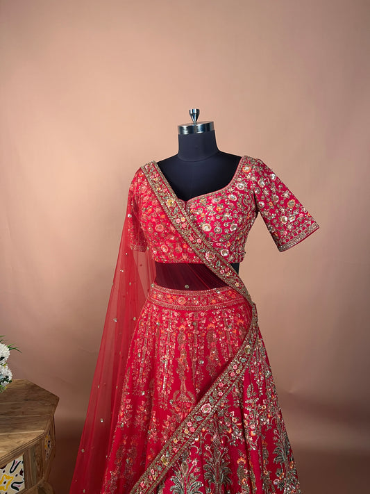 Regal Red Zari Embroidered Bridal Lehenga Set