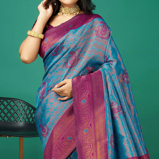 Blue Zari Woven Banarasi Silk Saree with Tassels