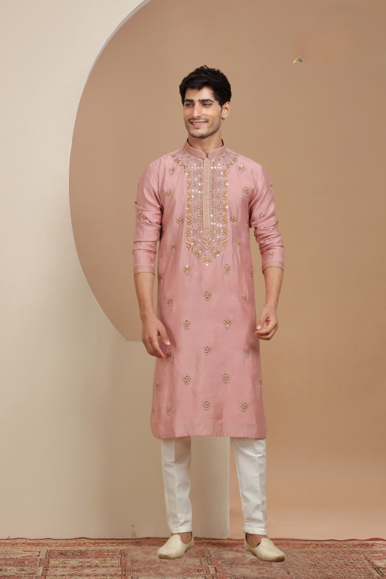 Baby Pink Mirror Work Kurta Set