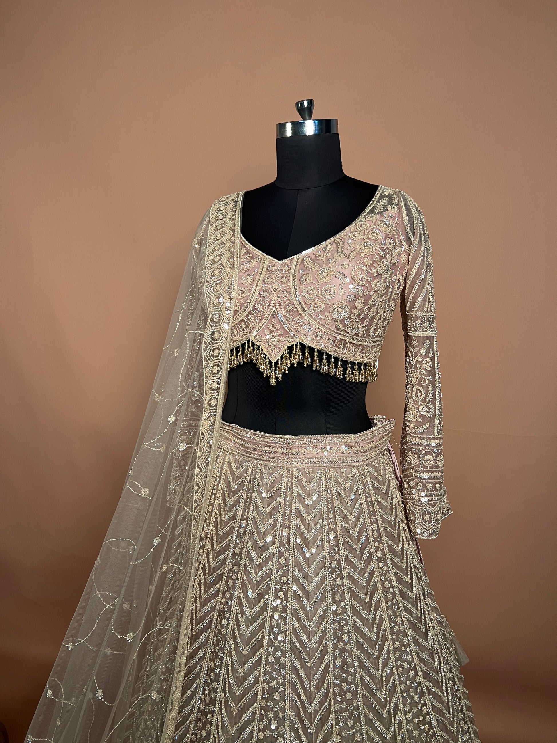 Beige Designer Lehenga with Heavy Sequin & Tassel Embroidery
