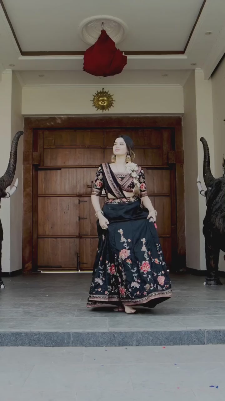Embrace the festive spirit of Navratri in style with this exquisite black chaniya choli ensemble featuring red flower prints. Tailored from premium cotton fabric, this outfit ensures comfort and breathability throughout the vibrant celebrations. Complete with a meticulously crafted blouse, a swirling lehenga and a matching dupatta, it's the perfect attire to dance and revel in the nine nights of Navratri. Radiate grace and elegance as you adorn this traditional yet chic ensemble, making every moment of the festivities memorable and colorful.