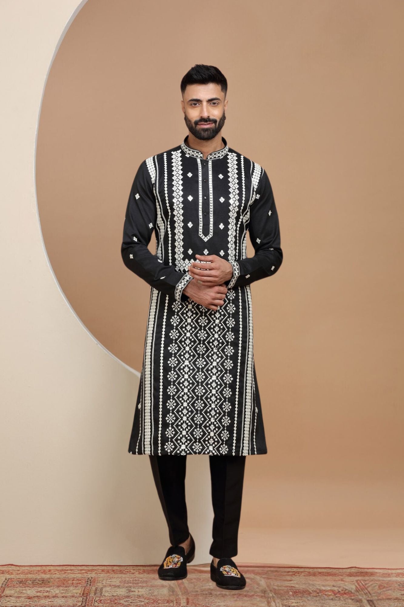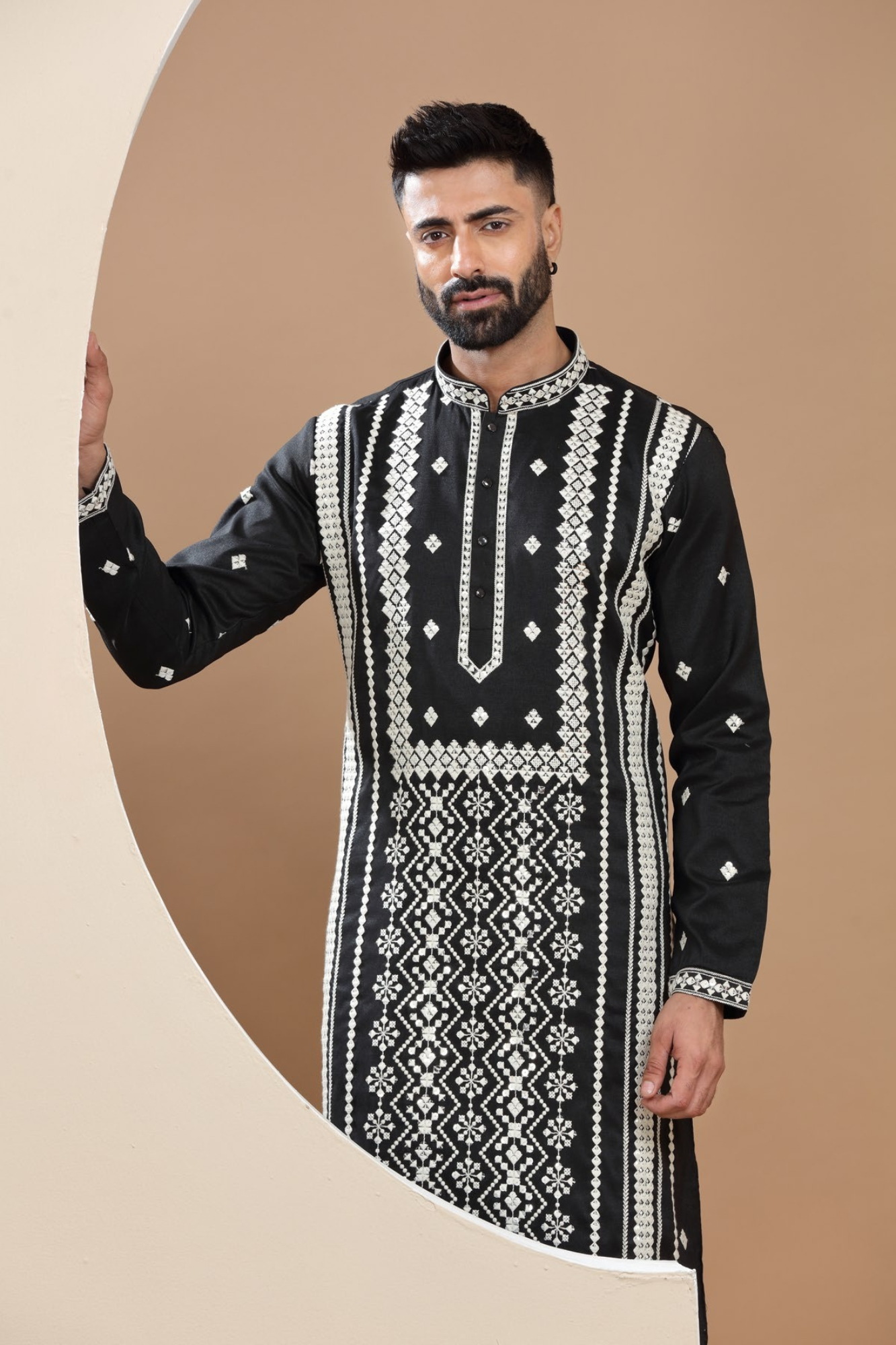 Add some sparkle to your wardrobe with our Black Sequin Cotton Blend Kurta! Featuring black sequins and a comfortable cotton blend, this kurta is perfect for any occasion. Stand out from the crowd and add some bling to your everyday look.