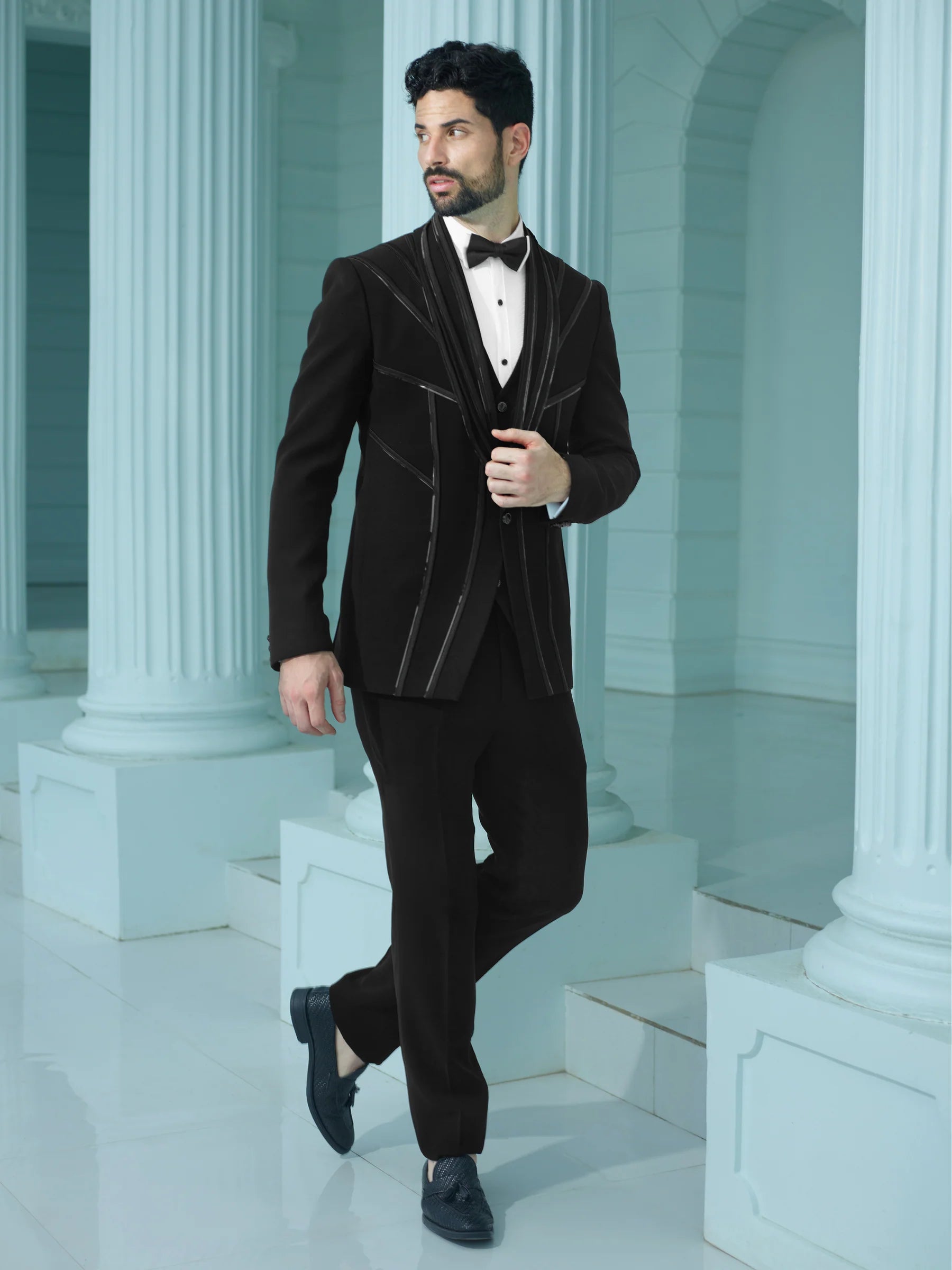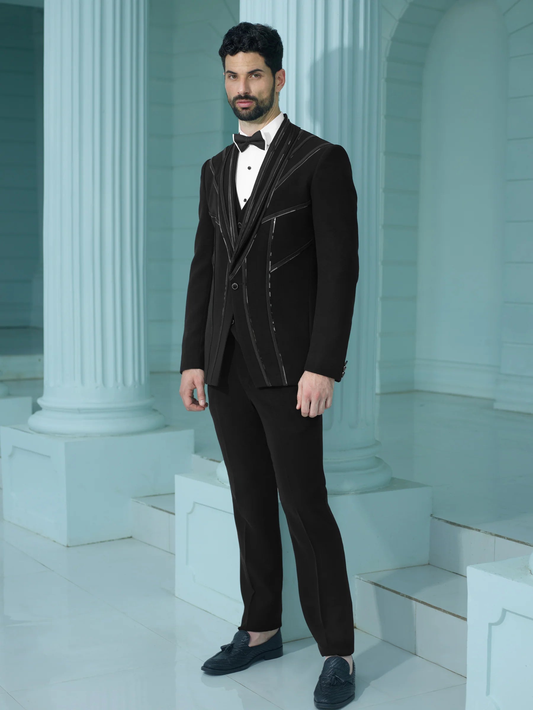 Elevate your style with our BLACK SUIT WITH CHROME DETAILING. Sleek and sophisticated, this suit adds a touch of modern elegance to any occasion. Stand out from the crowd with the unique chrome detailing, making you look sharp and confident. Upgrade your wardrobe with this must-have suit.